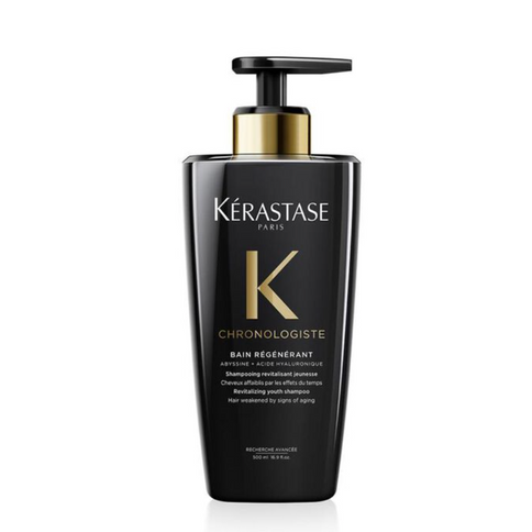 Bain Régénérant de Kérastase est un shampooing de jeunesse revitalisant infusé d'Acide Hyaluronique et d'Abyssine, formulé pour les cheveux affaiblis par les signes de l'âge : sécheresse, ternissement, frisottis, manque de volume et d'épaisseur.